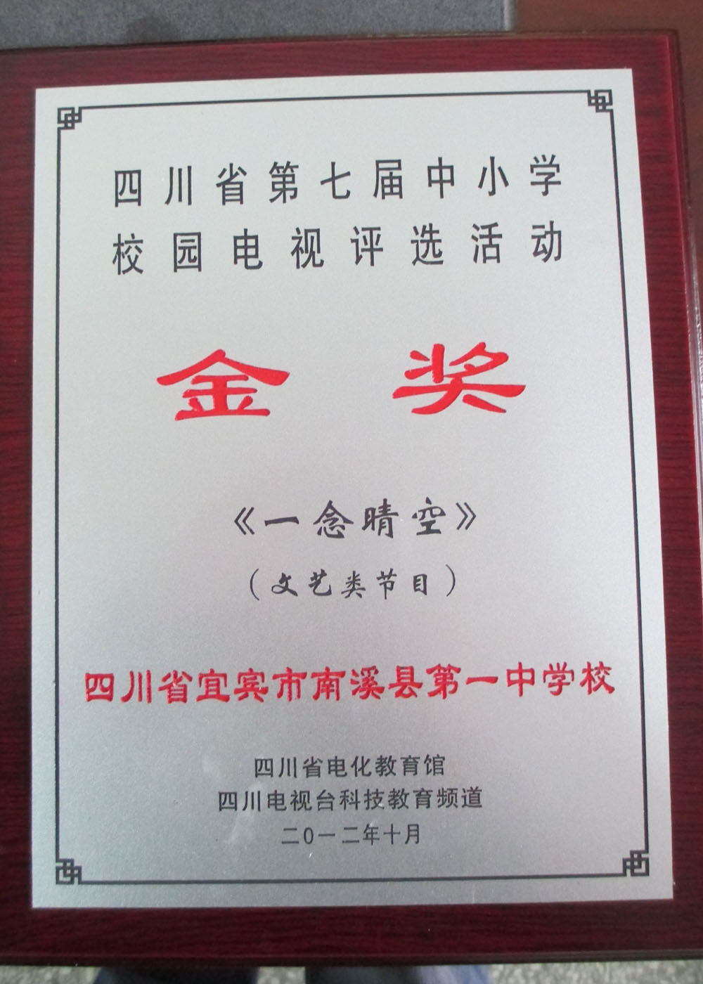據(jù)悉,南溪一中校園電視臺系四川省首屆十佳校園電視臺,2011年,校園微型劇《靜默花開》榮獲第三屆中國校園電視節(jié)暨第八屆中國中小學校園電視獎金獎;2012年,自制微電影《一念晴空》獲得四川省第七屆中小學校園電視評選微電影類金獎;2013年,自制文明宣傳片《如果這個世界多一點》獲得四川省首屆微電影大賽“最佳創(chuàng)意獎”;2015年,自制微電影《光明之路》榮獲遂寧市微電影大賽、最佳配樂獎。(審簽:駱關(guān))
