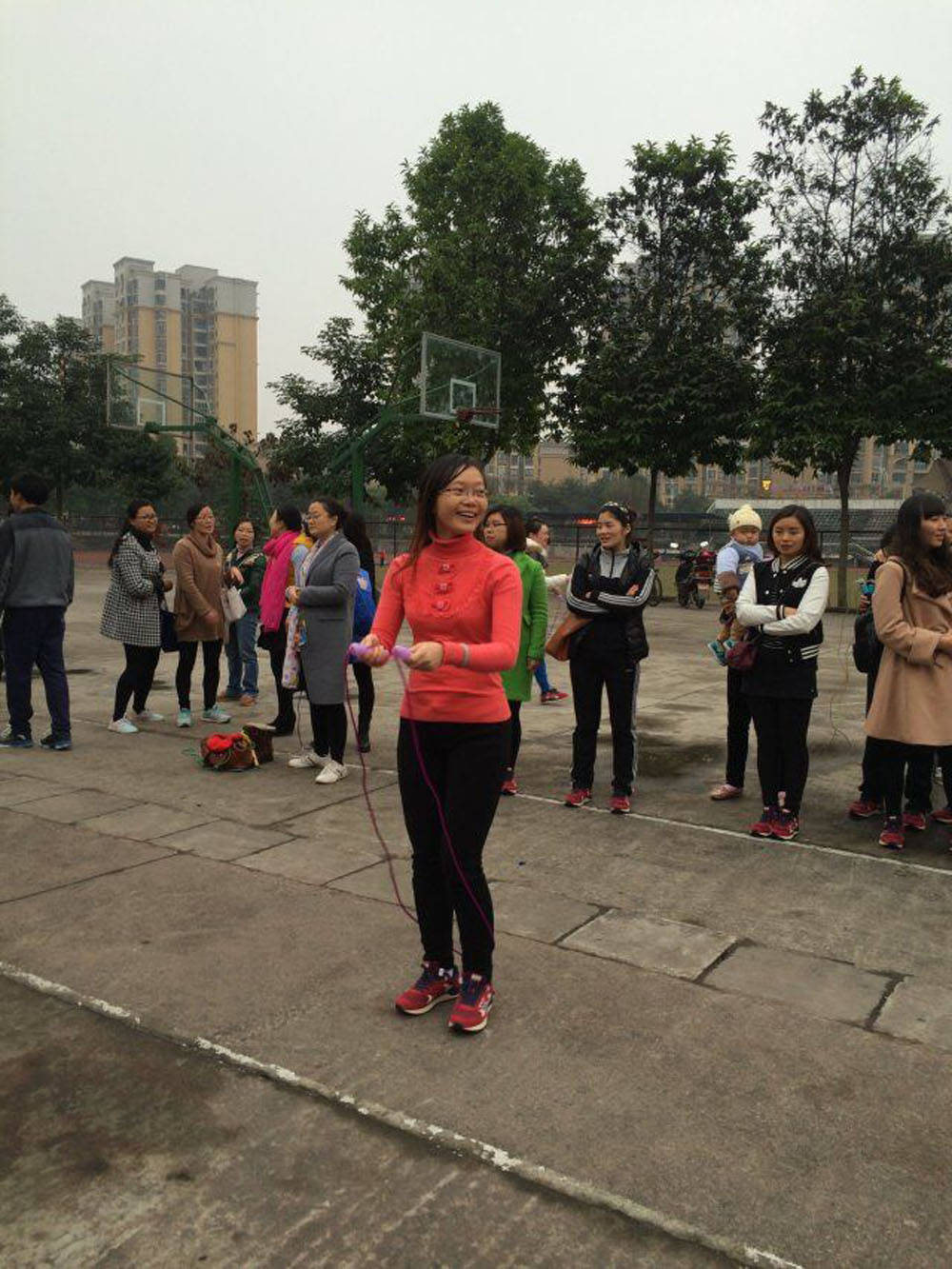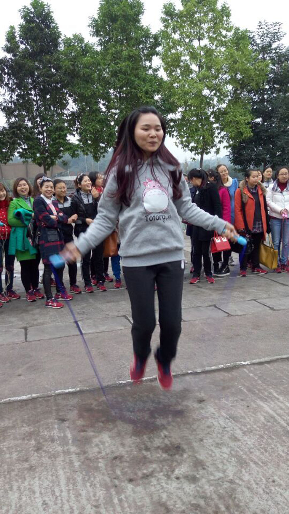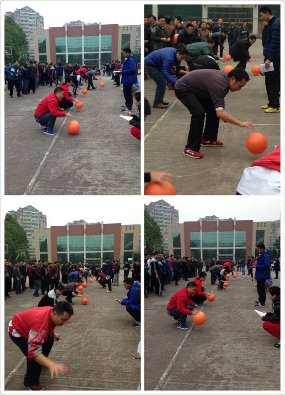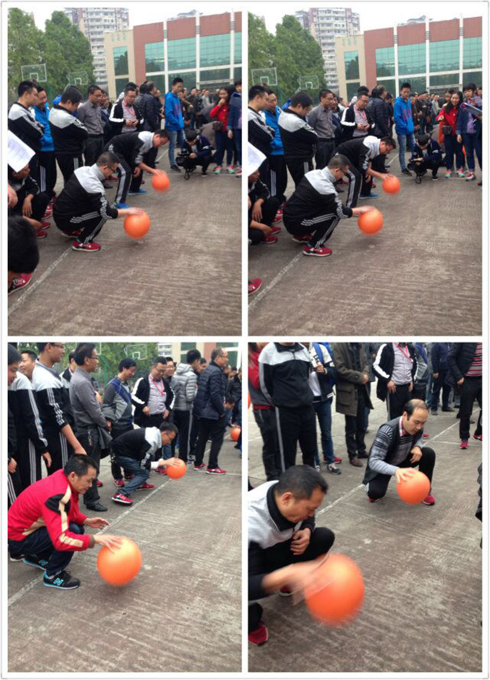 隨著裁判員一聲哨響,男教師們手掌翻飛,快速高頻地拍動(dòng)著氣排球,嘭嘭嘭聲振奮精神。女教師們迅速擺動(dòng)雙臂,繩子在指尖甩動(dòng)出圓轉(zhuǎn)的弧線,腳尖不斷地墊跳,柔美的身姿在繩間跳躍,噼里啪啦的聲音扣人心弦。裁判員們專(zhuān)注地盯著步點(diǎn),可愛(ài)的點(diǎn)頭數(shù)數(shù),身子也隨著節(jié)拍不由自主地抖動(dòng)著!2014級(jí)加油!”“2013級(jí)雄起!”“男神!最棒!”“堅(jiān)持!繼續(xù)加油!”……加油聲、吶喊聲、助威聲響徹耳畔,運(yùn)動(dòng)場(chǎng)上人山人海,熱鬧非凡,這是南溪一中正在舉行教職工冬季趣味運(yùn)動(dòng)會(huì)。