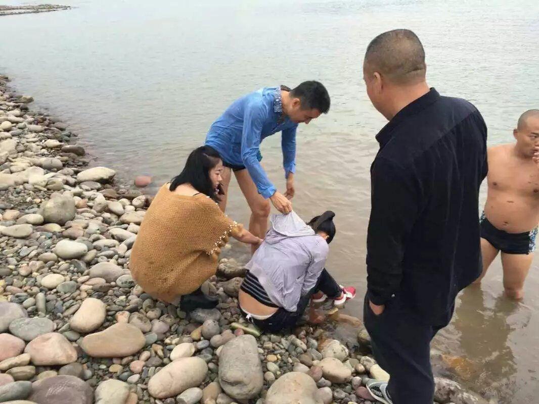 下午4:30左右,南溪區(qū)游泳協(xié)會精英橫渡大隊的二十多名隊員正在巨洋大酒店段江邊熱身,準備入水游泳,而落水女孩和她朋友在離他們100米左右的地方玩耍。正準備下水的時候突然聽到大聲的呼救聲,發(fā)現(xiàn)兩名女孩其中一人不慎落水,由于水流很急,已經(jīng)漂到了離江邊10多米的地方。