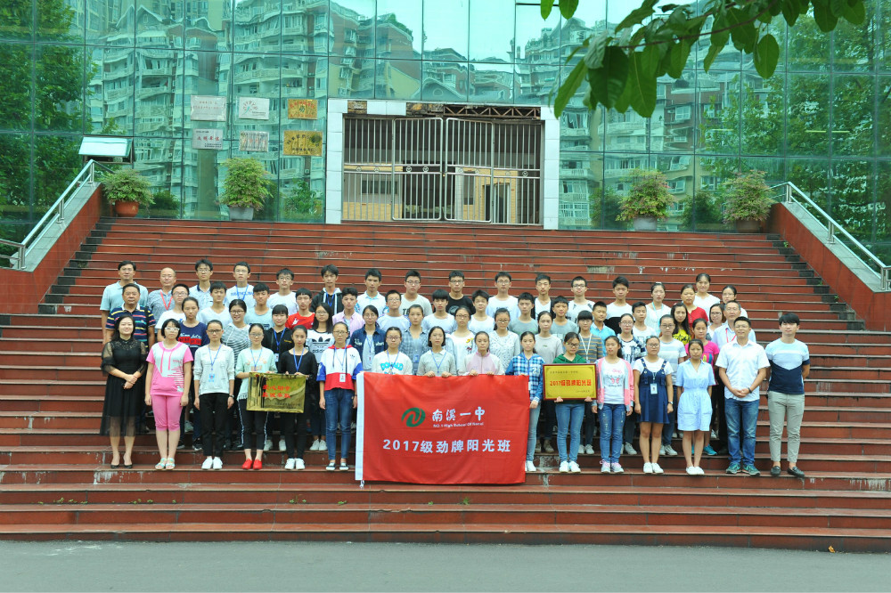開班儀式后,與會領(lǐng)導(dǎo)同南溪一中首屆勁牌陽光班學(xué)生合影留念。