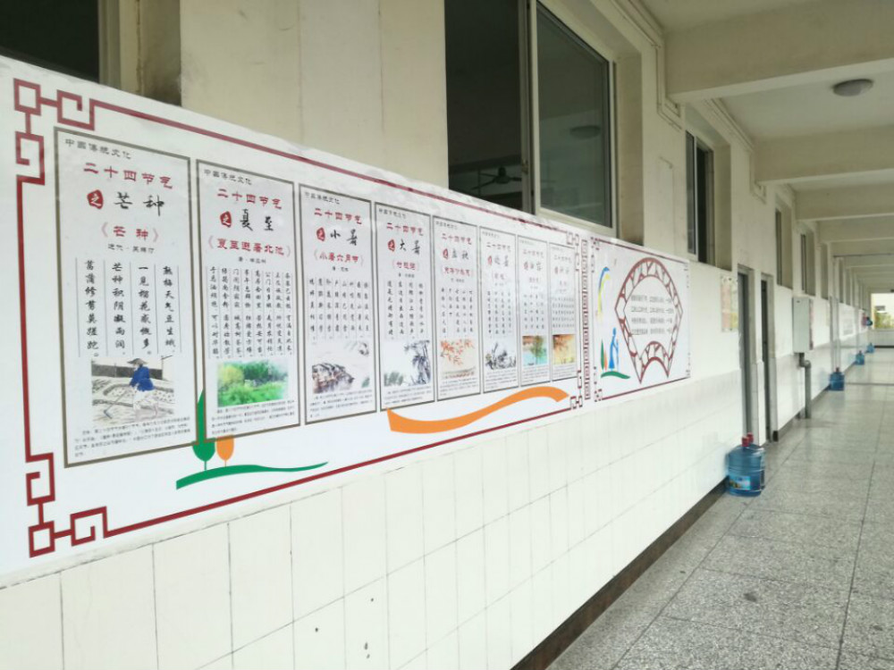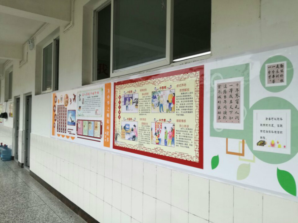 從新學(xué)期開始,高一全體師生充分利用課余時間,一起全身心地投入到了對自己班內(nèi)文化墻、走廊進(jìn)行自查、校對、修補及更換等一系列的工作當(dāng)中來。年級組狠抓學(xué)生行為習(xí)慣的養(yǎng)成教育,專門在每間教室外墻上噴繪了精選的新二十四孝、二十四節(jié)氣、三字經(jīng)、勵志故事等內(nèi)容,各班美化教室、營造濃厚的學(xué)習(xí)氛圍。