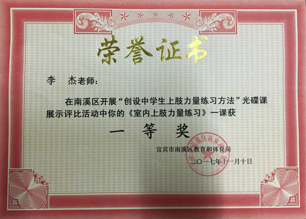 (李強(qiáng))近日,南溪區(qū)開(kāi)展了“創(chuàng)設(shè)中學(xué)生上肢力量練習(xí)方法”評(píng)比活動(dòng),南溪一中李杰老師參賽并獲一等獎(jiǎng)。