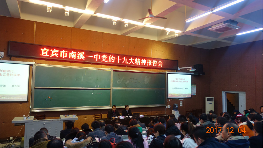 (楊波)12月4日,南溪一中在高三階梯教室舉行了黨的十九大精神報(bào)告會(huì)。南溪一中高中部全體教職工和南溪一中外國(guó)語(yǔ)實(shí)驗(yàn)學(xué)校全體黨員同志參會(huì)。南溪一中黨委書(shū)記、校長(zhǎng)郎紅主持報(bào)告會(huì)。