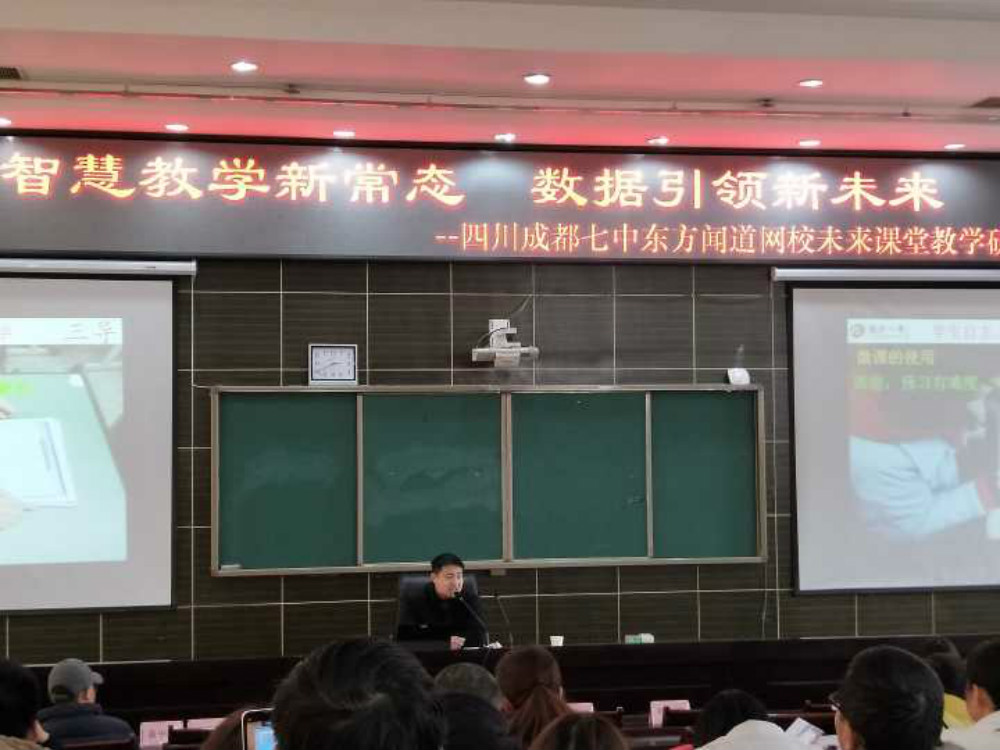 (王信釧)12月22日,成都七中東方聞道網(wǎng)校未來課堂教學研討會在宜賓舉行。我校未來課堂班部分老師應邀參加研討會,并代表學校作了基于《普通高重“導探式”教學模式研究》下的《未來課堂的研究與實踐》專題報告。