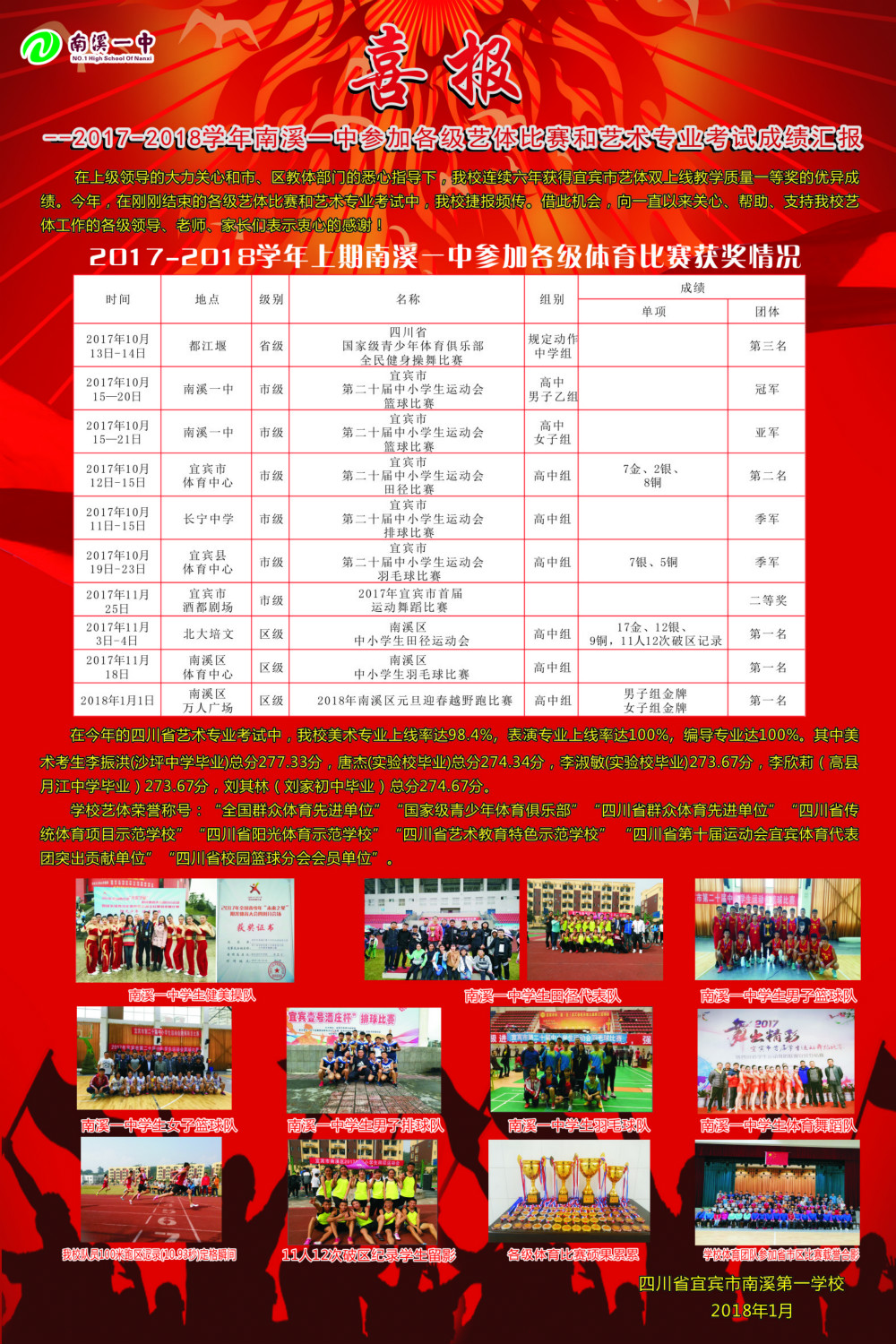 喜報:2017-2018學(xué)年上期參加各級藝體比賽和藝術(shù)專業(yè)考試成績匯報