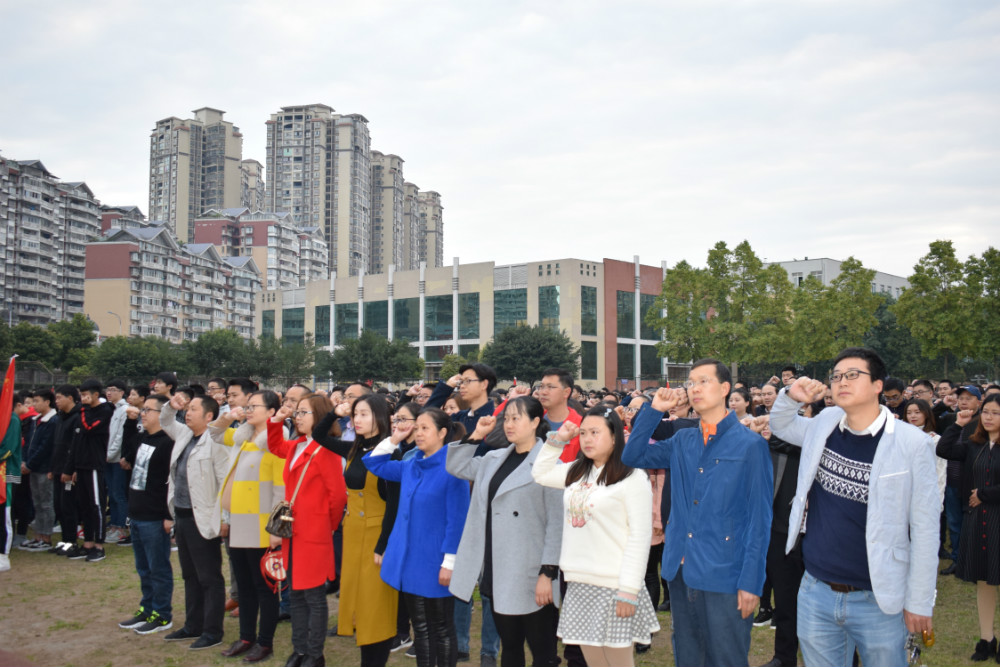 最后,郎紅校長帶領全體教職員工宣誓:“我是光榮的南溪一中教師,面對國旗,莊嚴宣誓:崇本尚進,立德修身,精業(yè)善道,啟智求真,為成就學子夢想,為實現民族復興奮斗終生。”新學期正式揚帆起航,相信在南溪一中人的共同努力下,2018年必將又是豐收的一年!