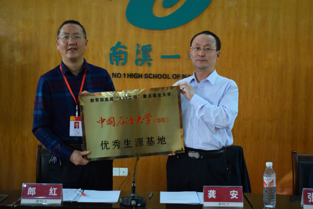 簽約授牌儀式上,南溪一中黨委書記、校長郎紅致歡迎詞。中國石油大學(xué)龔教授介紹了中國石油大學(xué)的發(fā)展歷程和辦學(xué)成果,對學(xué)校的教育教學(xué)成績給予了充分肯定。會上,中國石油大學(xué)與南溪一中簽訂了共建優(yōu)秀生源基地協(xié)議,并舉行了“優(yōu)秀生源基地”授牌儀式。
