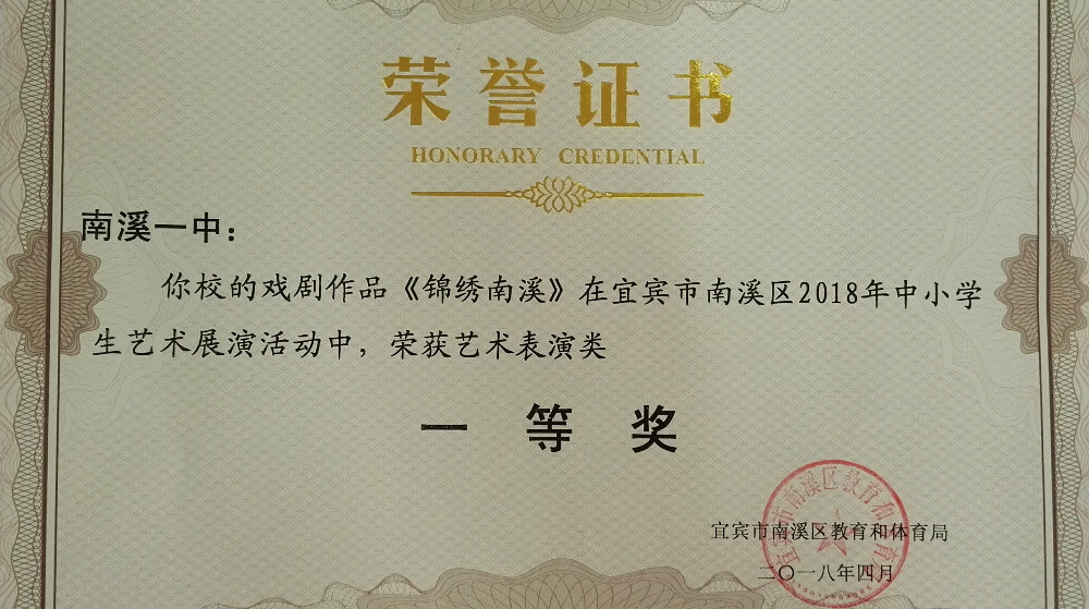 南溪一中在這次推送的31個(gè)節(jié)目中脫穎而出,戲劇類(lèi)節(jié)目《錦繡南溪》和聲樂(lè)類(lèi)節(jié)目《調(diào)笑令﹒胡馬》《I'm yours》分別榮獲藝術(shù)表演類(lèi)一等獎(jiǎng)。