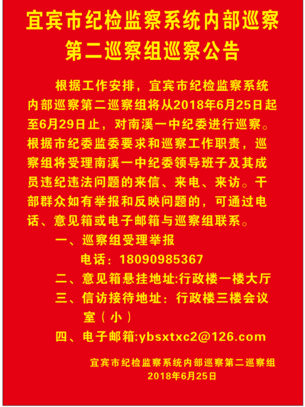 宜賓市紀(jì)檢監(jiān)察系統(tǒng)內(nèi)部巡察第二巡察組巡察公告