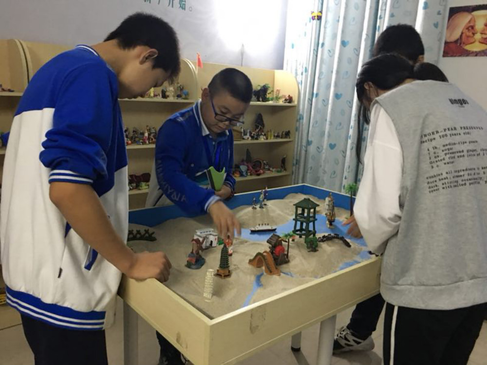 四名孩子在國家二級心理咨詢師段老師的帶領(lǐng)下走進學校的沙盤室,他們首先在段老師的指導下完成了沙盤游戲,接著段老師根據(jù)孩子們的游戲情況跟他們進行了交流,并鼓勵他們勇敢面對自己,并不斷完善自己。通過沙盤游戲,幾名孩子有效地釋放了壓力,樹立起了戰(zhàn)勝困難的信心和勇氣,并感謝學校和段老師對他們的關(guān)心和幫助。