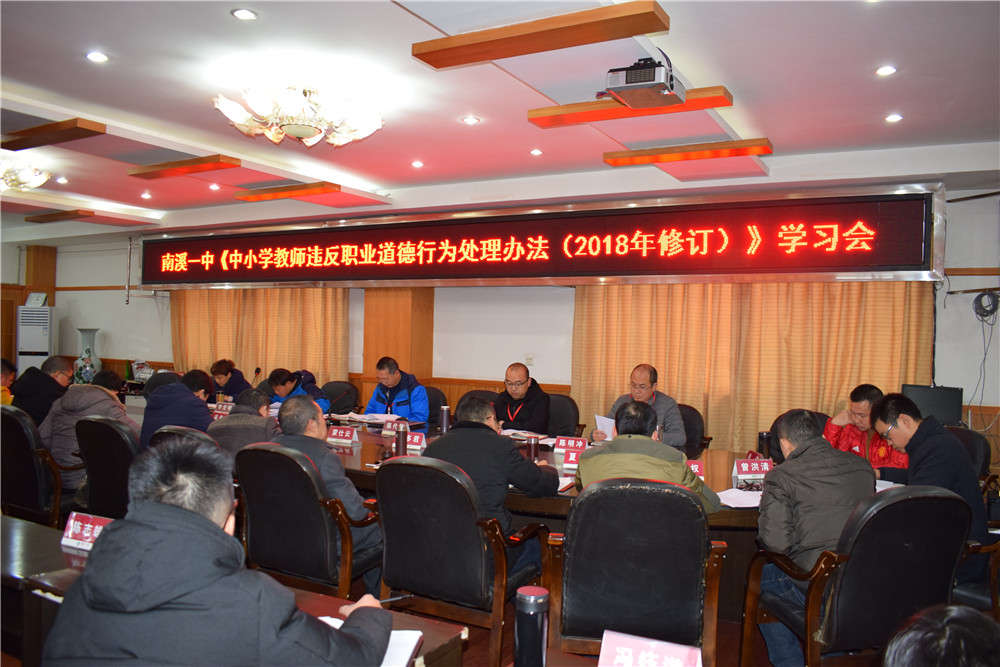 南溪一中舉行《中小學教師違反職業(yè)道德行為處理辦法(2018年修訂)》學習會