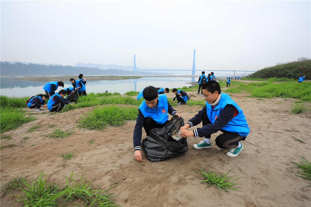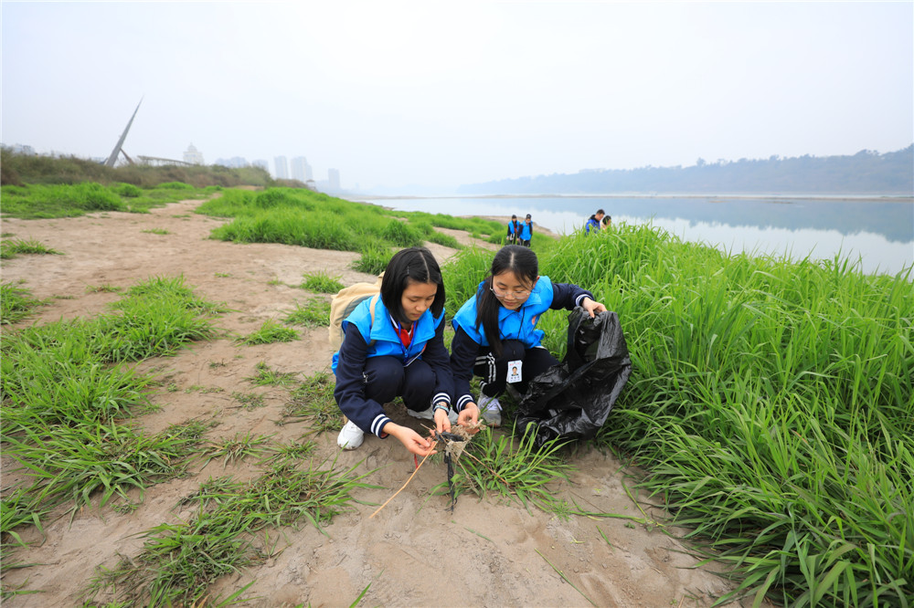 隨后,同學(xué)們積極響應(yīng)“助力河長制,共建美麗宜賓”的號(hào)召,來到江邊清理江灘。料峭春風(fēng)帶著寒意打在師生們的臉上,卻并未阻止他們的熱情。同學(xué)們劃分區(qū)域,三三兩兩的將各種白色垃圾放入自帶的垃圾袋中,最后再集中放入回收站。經(jīng)過近三個(gè)小時(shí)的努力,沿江沙地基本清理干凈,母親河又重新干凈清新,美麗如初。