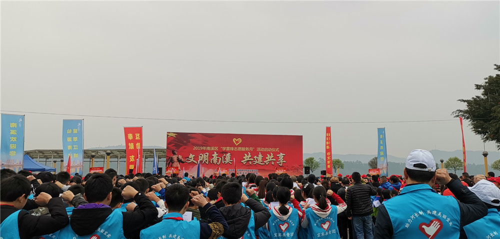 全體師生首先在仙緣廣場參加了2019年南溪區(qū)“學(xué)雷鋒志愿服務(wù)月”活動(dòng)啟動(dòng)儀式。