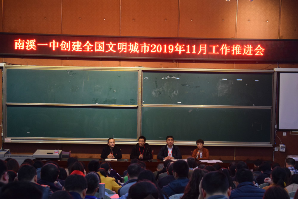 (楊波)11月1日,南溪一中在高三階梯教室召開了創(chuàng)建全國文明城市2019年11月工作推進(jìn)會,全校教職工參會。