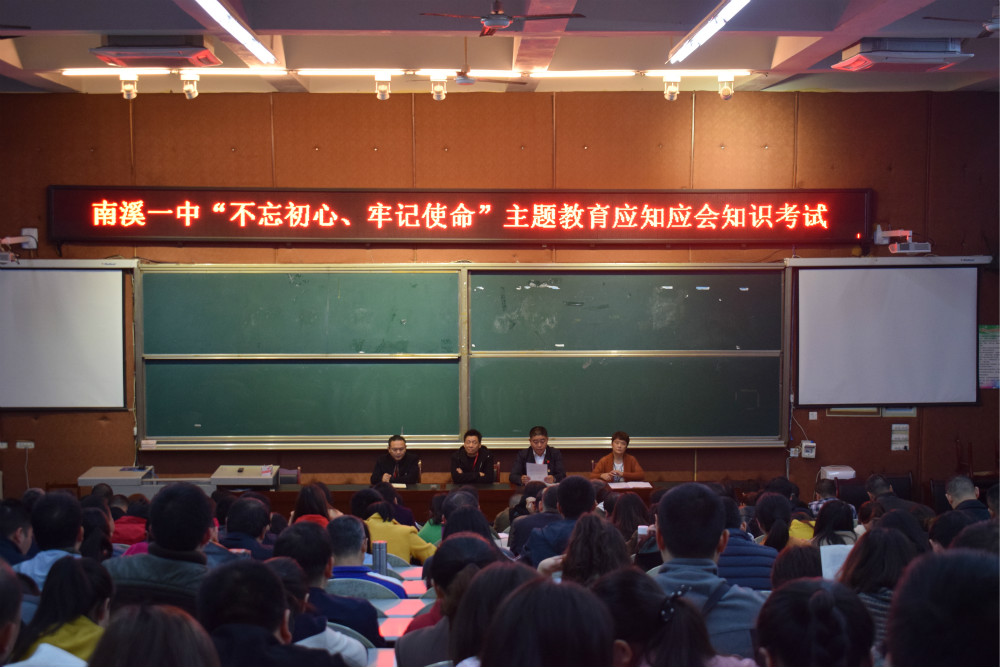 (楊薇、趙楠)為扎實(shí)開展好“不忘初心、牢記使命”主題教育,豐富學(xué)習(xí)教育形式,提高學(xué)習(xí)質(zhì)量。11月4日,南溪一中在高三階梯教室舉行了“不忘初心、牢記使命”主題教育應(yīng)知應(yīng)會理論知識測試。