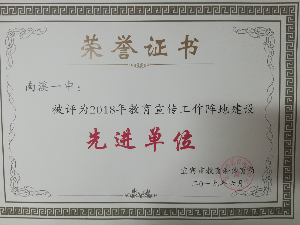 喜報:南溪一中被評為2018年教育宣傳工作陣地建設(shè)先進(jìn)單位