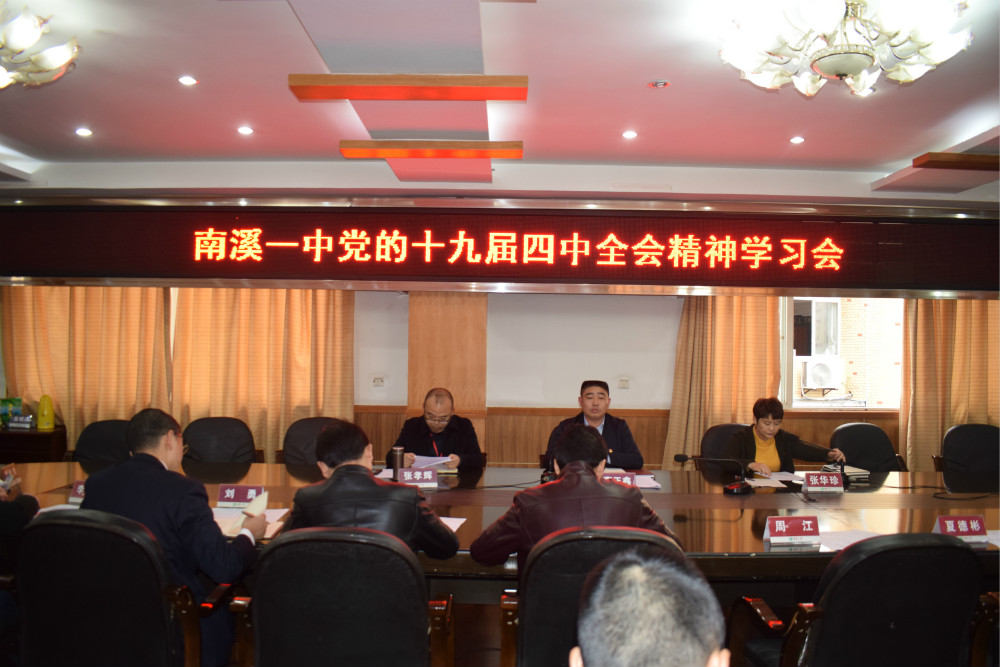 (楊波)11月15日,南溪一中在行政樓會議室召開了黨的十九屆四中全會精神學習會,在家校級領導和全體中層干部參會。會議由黨委書記、校長高正鑫主持。