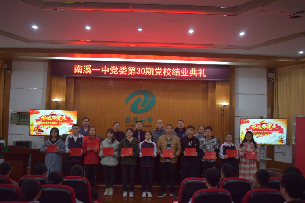 (楊波)11月18日,南溪一中在學(xué)術(shù)報(bào)告廳舉行了第30期黨校結(jié)業(yè)典禮,黨委書記、校長(zhǎng)高正鑫,紀(jì)委書記陳明沖,一支部支委成員和第30期黨校全體學(xué)員出席。典禮由一支部書記曾丞君主持。