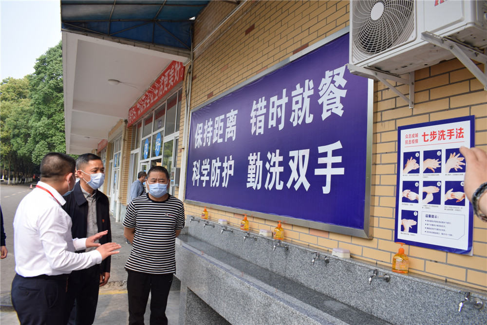 王敘成一行現(xiàn)場(chǎng)查看了紅外線測(cè)溫儀的測(cè)試效果,對(duì)門崗體溫登記、出入登記進(jìn)行了詳細(xì)查看,仔細(xì)詢問了學(xué)校的應(yīng)急預(yù)案處置方式和教職工信息的摸排情況,聽取了學(xué)校關(guān)于食堂錯(cuò)峰就餐、食品安全等方面的情況匯報(bào)。