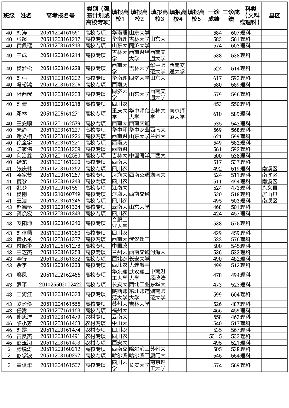 南溪一中高2017級(jí)強(qiáng)基計(jì)劃和高校專項(xiàng)公示