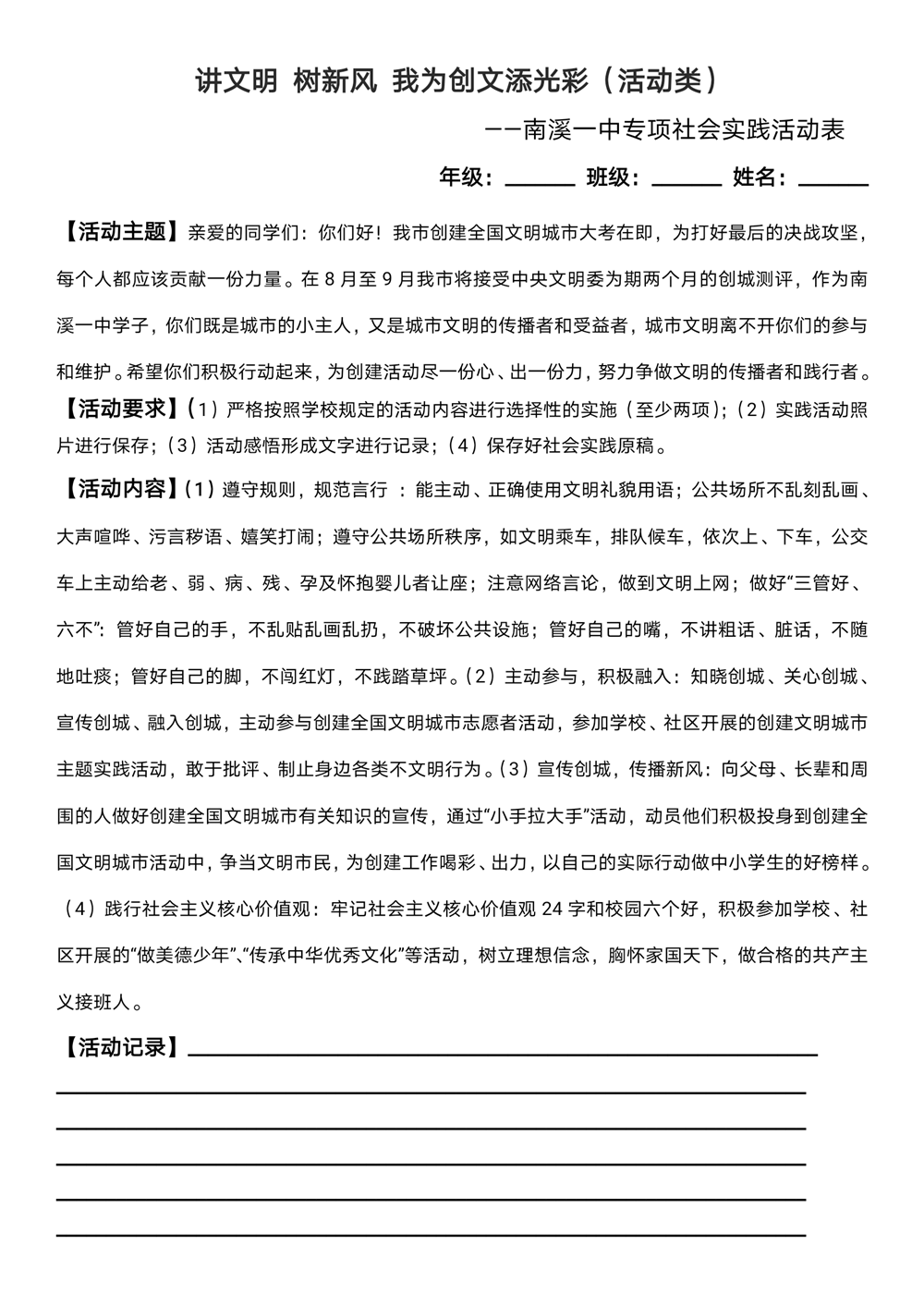 南溪一中專項(xiàng)社會(huì)實(shí)踐表(活動(dòng)類)