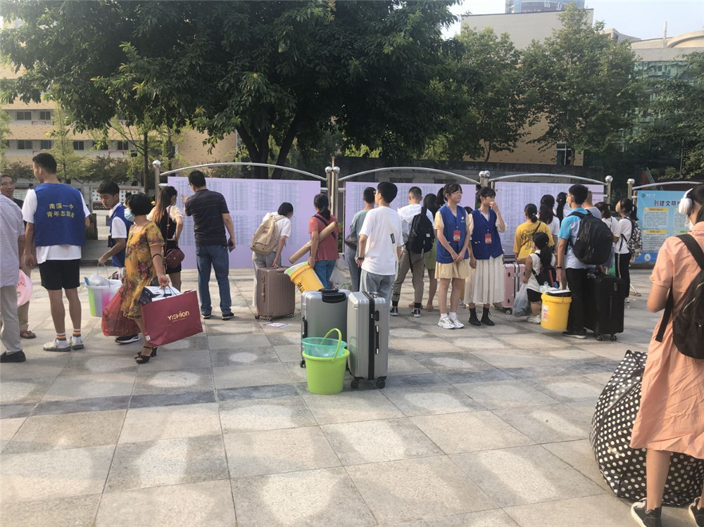 他來了,她來了。他們朝氣蓬勃、帶著憧憬踏上了人生新的旅途。提著行李來來往往的學(xué)生和家長們嚴(yán)格履行入校流程,有序排隊,體溫測量,遞交健康證明……一切進(jìn)展得那么順利。負(fù)責(zé)路口引領(lǐng)的學(xué)生志愿者,用最溫暖額微笑和最親切的話語歡迎著新生們的到來;學(xué)長志愿者主動幫忙搬運(yùn)行李,貼心、暖心,深入人心,這里,就是有愛的南一中。