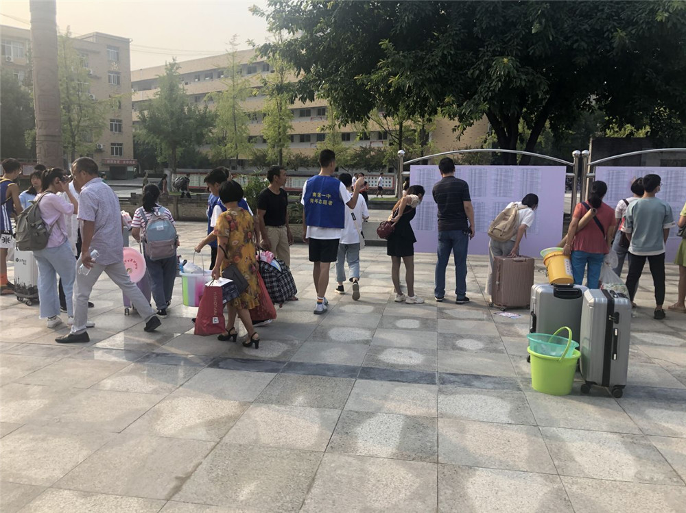 8月23日迎新日,比太陽起得更早的是準(zhǔn)備迎接新生的老師們。黨委書記、校長高正鑫,黨委委員、副校長張孝輝,高2020級年級組務(wù),全體班主任等早已等候在校門,新生來了,一中校園也沉浸在熱鬧中。