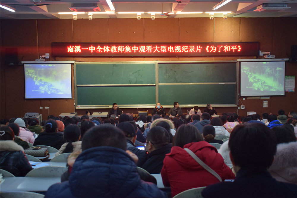 南溪一中組織全體教師集中觀看大型電視紀(jì)錄片《為了和平》