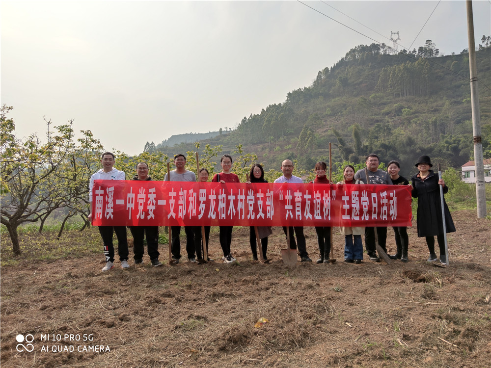 (彭懿)春回大地萬物蘇,植樹添綠正當時。為踐行“綠水青山就是金山銀山”理念,增強支部凝聚力,3月11日,在第43個植樹節(jié)即將來臨之際,南溪一中黨委一支部和羅龍柏木社區(qū)黨支部聯(lián)合組織開展了“共育友誼樹”主題黨日活動。南溪一中黨委委員、副校長張孝輝和一支部全體黨員參加了植樹活動。