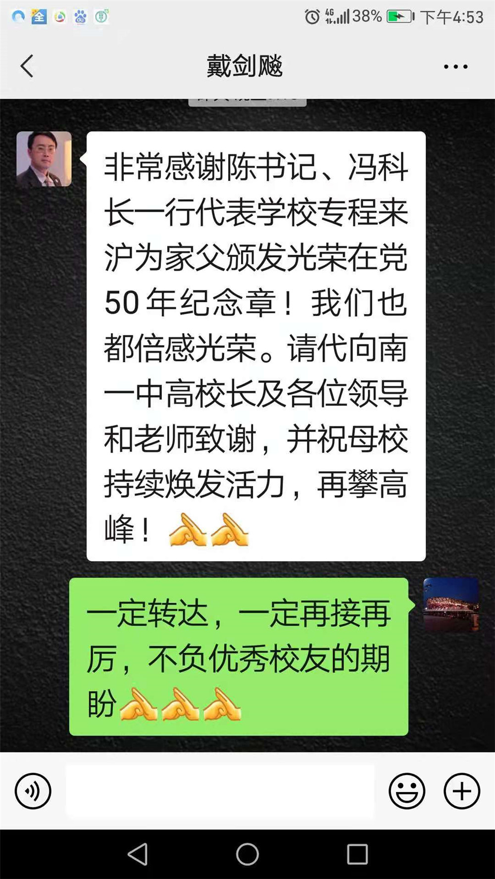 6月28日,在上海戴茂銓老校長(zhǎng)家長(zhǎng),學(xué)校黨委委員、紀(jì)委書(shū)記陳明沖同志代表學(xué)校黨委向戴茂銓老校長(zhǎng)頒發(fā)了“光榮在黨50年”紀(jì)念章和慰問(wèn)品,向老黨員們致以崇高敬意和親切問(wèn)候。