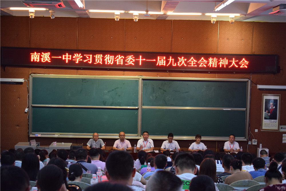(楊波)7月14日,南溪一中在中和堂召開學習貫徹省委十一屆九次全會精神大會,全校教職工參會。