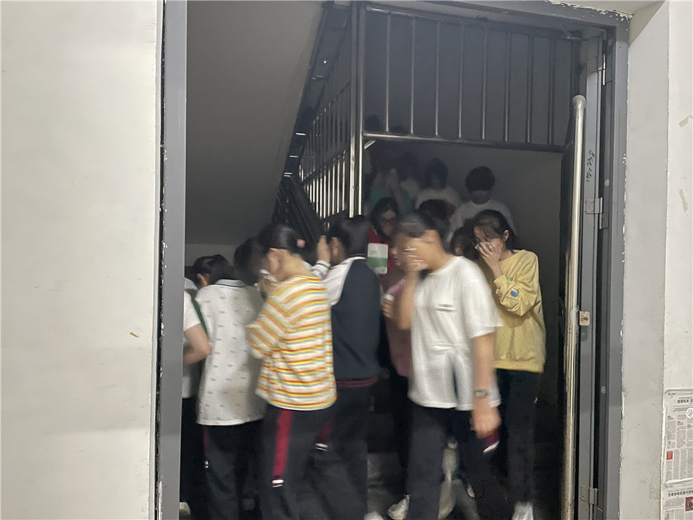 晚上10點(diǎn)15分,宿舍應(yīng)急疏散演練正式開始。隨著警報(bào)聲響起,南溪一中全體師生進(jìn)入緊急疏散狀態(tài)。各宿舍同學(xué)聽從樓層值日老師和生活老師的指揮,用濕毛巾或紙巾捂住口鼻,按照逃生路線從宿舍樓的不同出口,安全有序地疏散到操場(chǎng)集合地點(diǎn)。