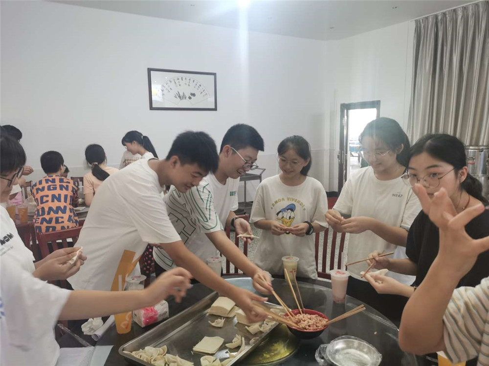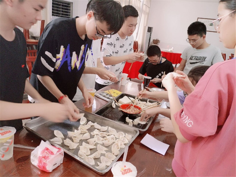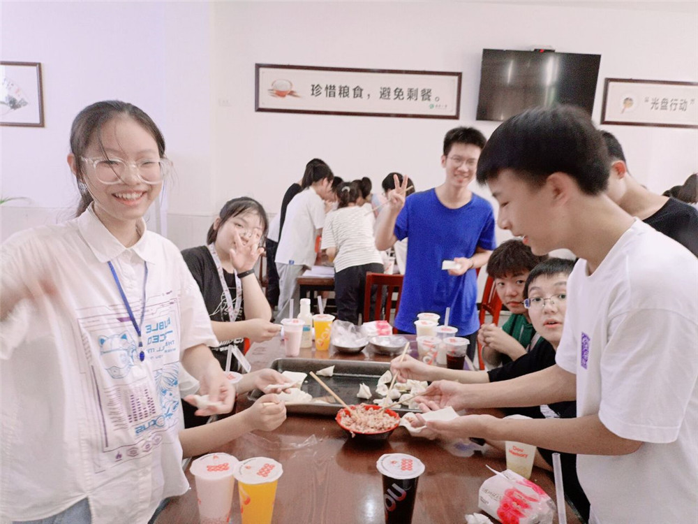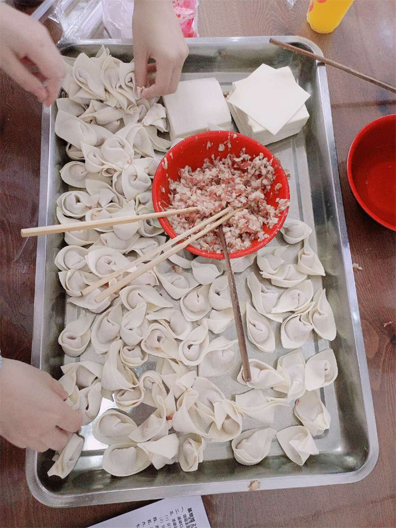 活動(dòng)開始啦!同學(xué)們勞動(dòng)熱情高漲!會(huì)包的同學(xué)拿出看家本領(lǐng),行云流水,抄手皮上下翻飛,餃子餡兒來(lái)來(lái)去去,可謂手到擒來(lái);不會(huì)的同學(xué)臨時(shí)拜師學(xué)藝,雖略顯笨拙,但包出的抄手也有模有樣。還有一些同學(xué),負(fù)責(zé)渲染氣氛,一邊眼珠緊盯著別人的手法打轉(zhuǎn),一邊胡亂地捏出各種造型,偏偏臉上還是一副波瀾不驚、民間高手的模樣,逗得大家哈哈大笑,在忙亂中又增添了幾分情趣。