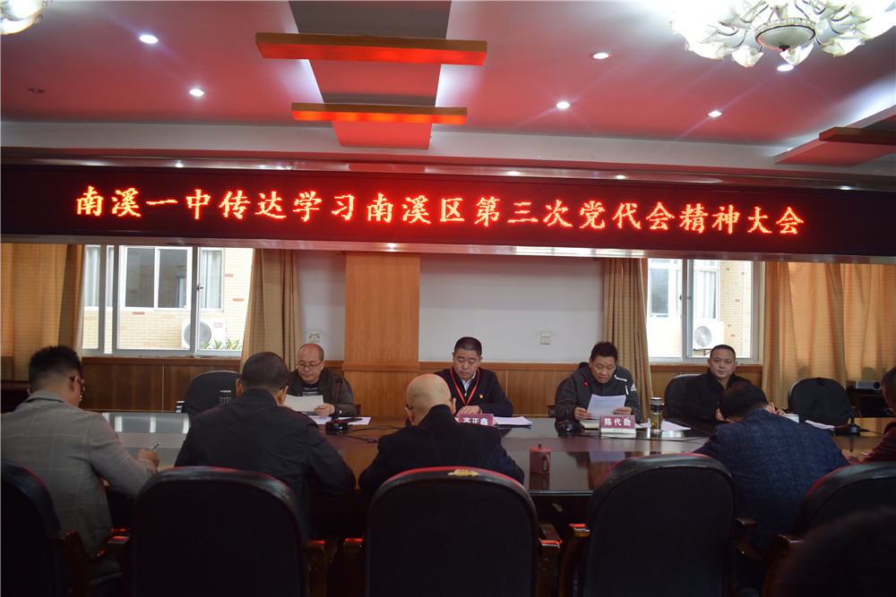 黨委委員、副校長陳代勛傳達(dá)學(xué)習(xí)了南溪區(qū)第三次黨代表大會精神。他從大會主題、五年成就、撤縣設(shè)區(qū)十周年成就、未來五年總體思路等方面?zhèn)鬟_(dá)了區(qū)第三次黨代表大會精神,要求大家做好學(xué)習(xí)貫徹,抓住發(fā)展機遇期,齊心協(xié)力推動學(xué)校新發(fā)展。