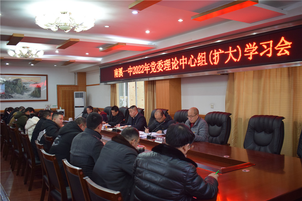 (唐小松)1月12日,南溪一中在勤政樓三樓會(huì)議室召開(kāi)了黨委理論學(xué)習(xí)中心組(擴(kuò)大)學(xué)習(xí)會(huì)。黨委班子成員、中層正職、支部書(shū)記和學(xué)習(xí)秘書(shū)參會(huì)。會(huì)議由學(xué)校黨委委員、紀(jì)委書(shū)記陳明沖主持。