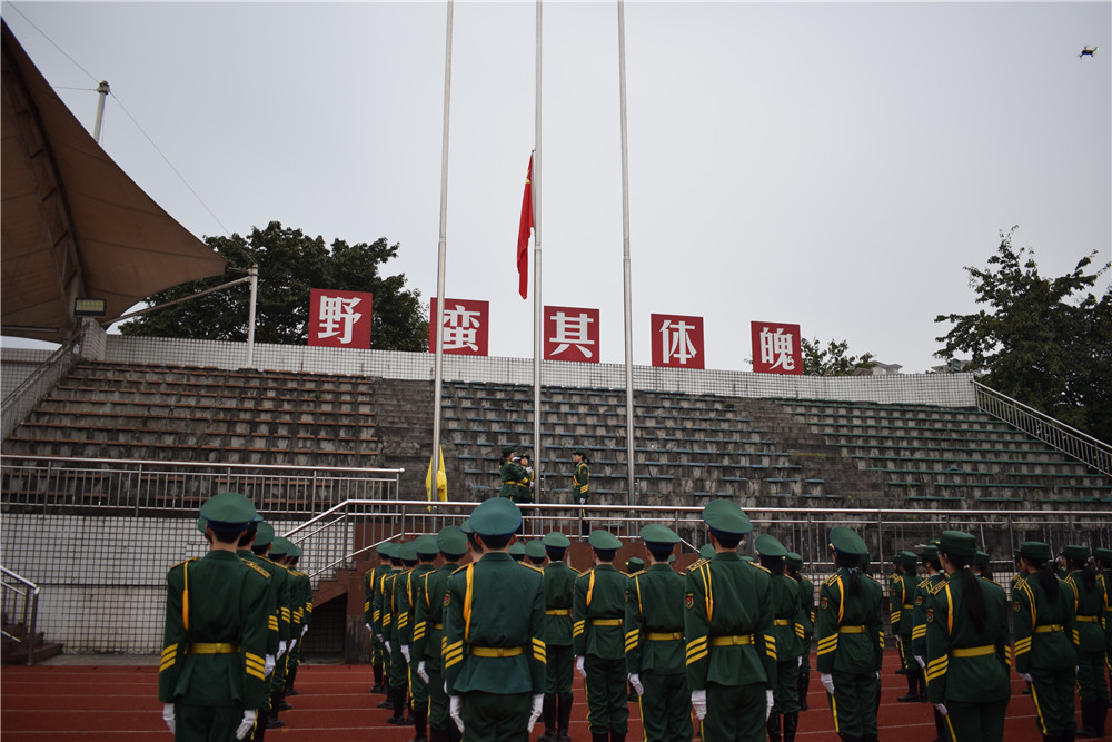 典禮在莊嚴的國歌聲中拉開帷幕,國旗隊邁著整齊矯健的步伐走過主席臺,鮮艷的五星紅旗冉冉升起,隨風飄揚。