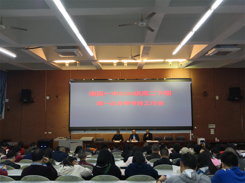 (范雪蕾)3月30日,南溪一中高2020級(jí)在中和堂召開了高二下期第一次月考考務(wù)工作會(huì),年級(jí)全體教師參會(huì)。