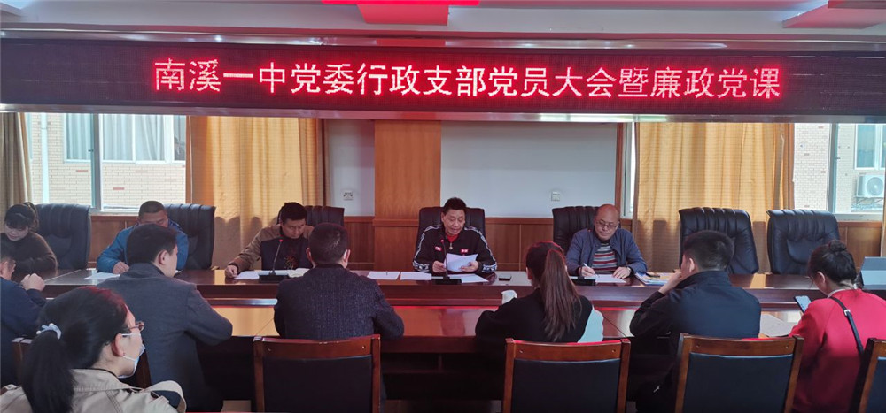 (李娟)4月6日,南溪一中黨委行政支部在勤政樓三樓會議室召開支部黨員大會,開展廉政教育專題黨課活動。