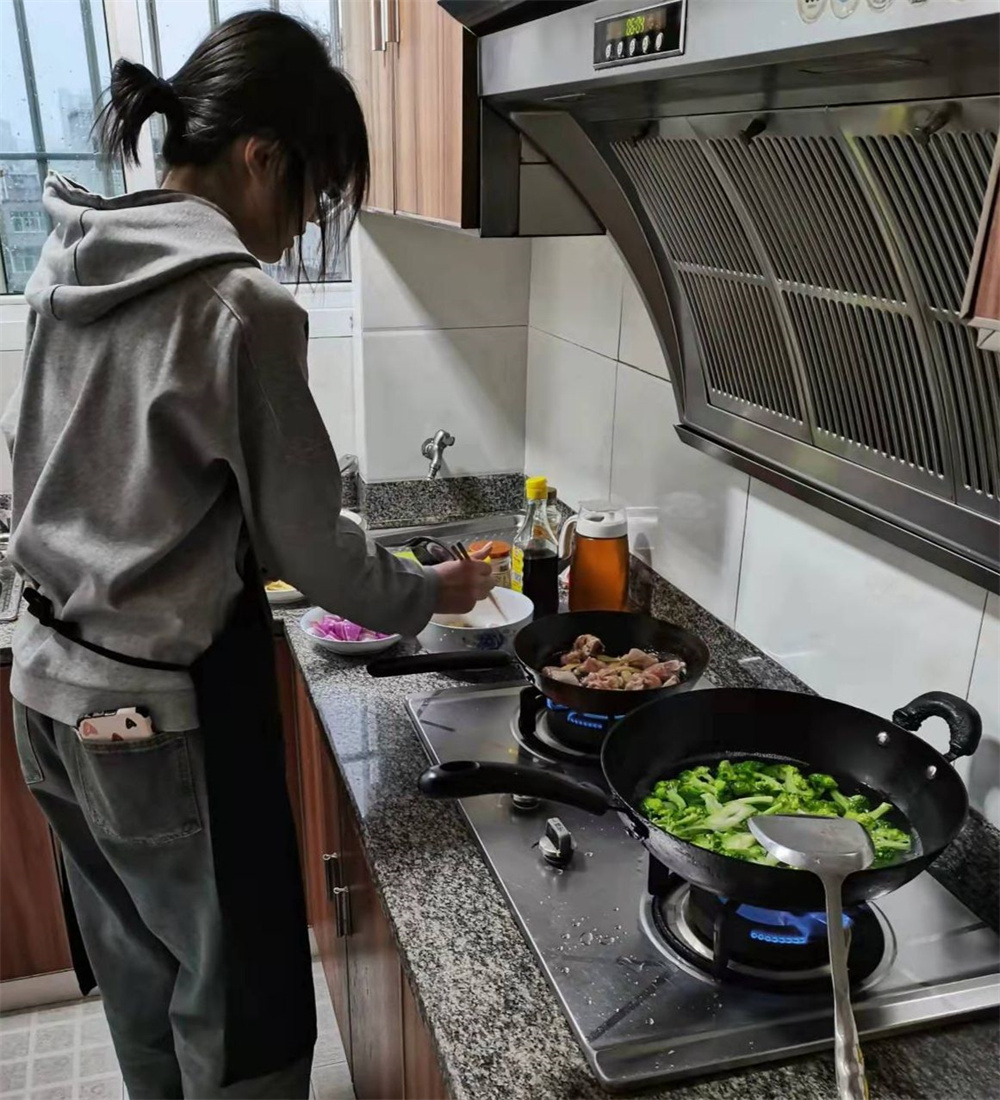 同學(xué)們?cè)诟改傅膸椭,大展身手,用心烹飪美食,品嘗自己的勞動(dòng)成果,感受自己勞動(dòng)帶來(lái)的成就感,在實(shí)踐中感受勞動(dòng)的樂(lè)趣,也體會(huì)到父母的不易。