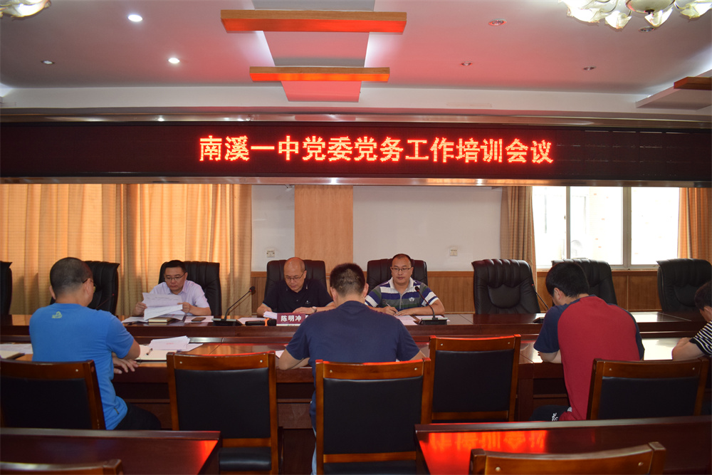 (唐小松)6月18日,南溪一中黨委在勤政樓三樓會議室召開了黨務工作培訓會議。黨委委員、紀委書記陳明沖、支部書記和黨政辦有關人員參會。