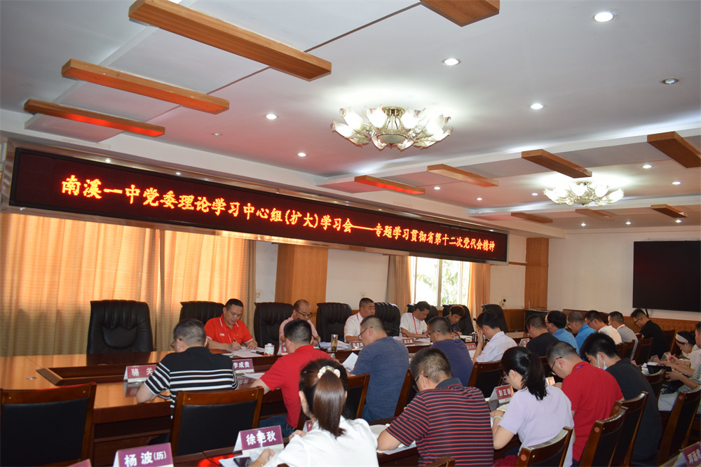 (唐小松)6月17日,南溪一中在勤政樓三樓會(huì)議室召開了黨委理論學(xué)習(xí)中心組(擴(kuò)大)學(xué)習(xí)會(huì),專題學(xué)習(xí)貫徹省第十二次黨代會(huì)精神。黨委班子成員、中層干部、支部書記和學(xué)習(xí)秘書參會(huì)。會(huì)議由學(xué)校黨委書記、校長(zhǎng)高正鑫主持。