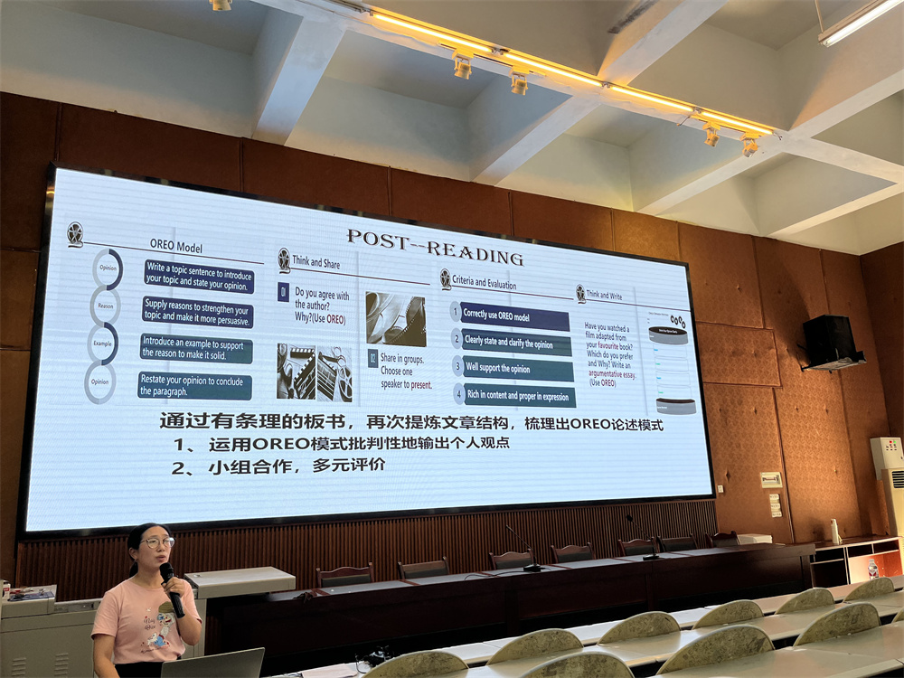 南溪一中第一個團隊由余長林、齊浪和楊柳三位老師組成。他們的教學設(shè)計新穎,教學理念先進,體現(xiàn)了大單元教學理念,也創(chuàng)新性地引入國外的教學模式和方法,與中國課堂和學生相結(jié)合。余長林老師在課堂中設(shè)計了豐富的教學活動,通過師生互動的方式,小組討論的模式以及問題教學法來引導學生一步步梳理文章結(jié)構(gòu),深挖文章內(nèi)容,整堂課極具操作性和實現(xiàn)性。