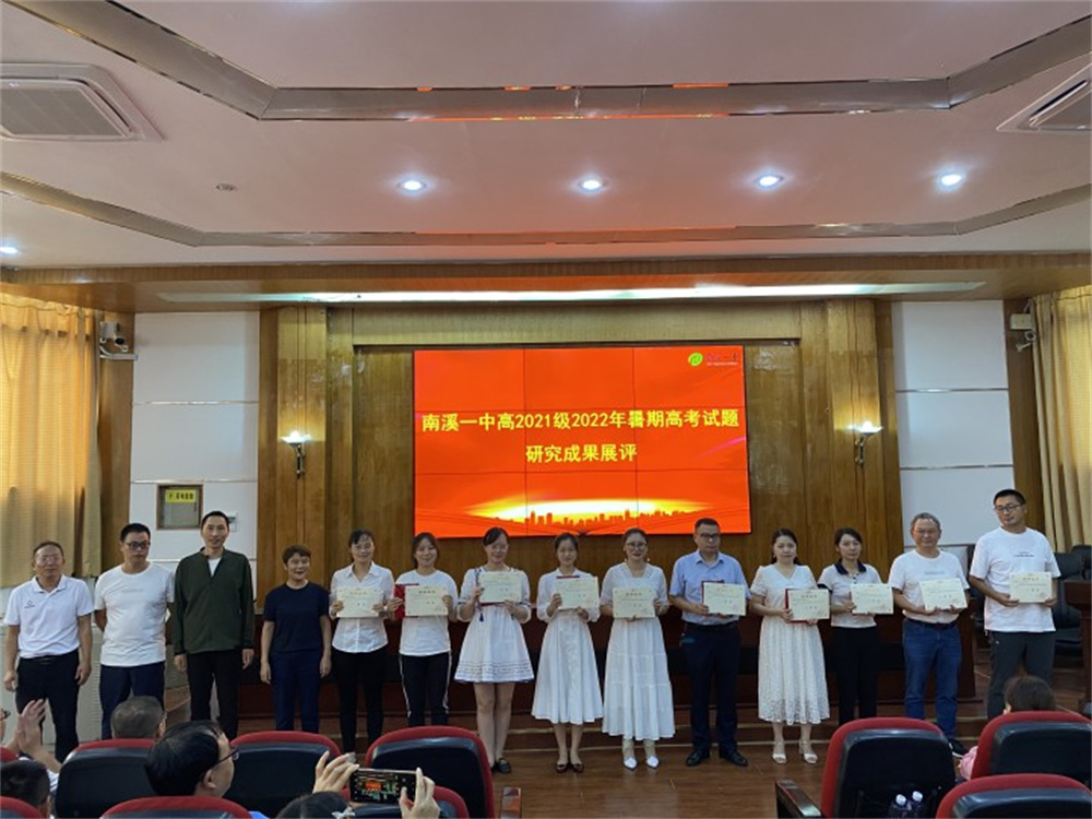 (趙楠)8月30日,南溪一中高2021級在奎峰講堂舉行了2022年暑期高考試題研究成果展評會,黨委委員、副校長張華珍,黨委委員、副校長蒙仕云和高2021級全體教師參會。