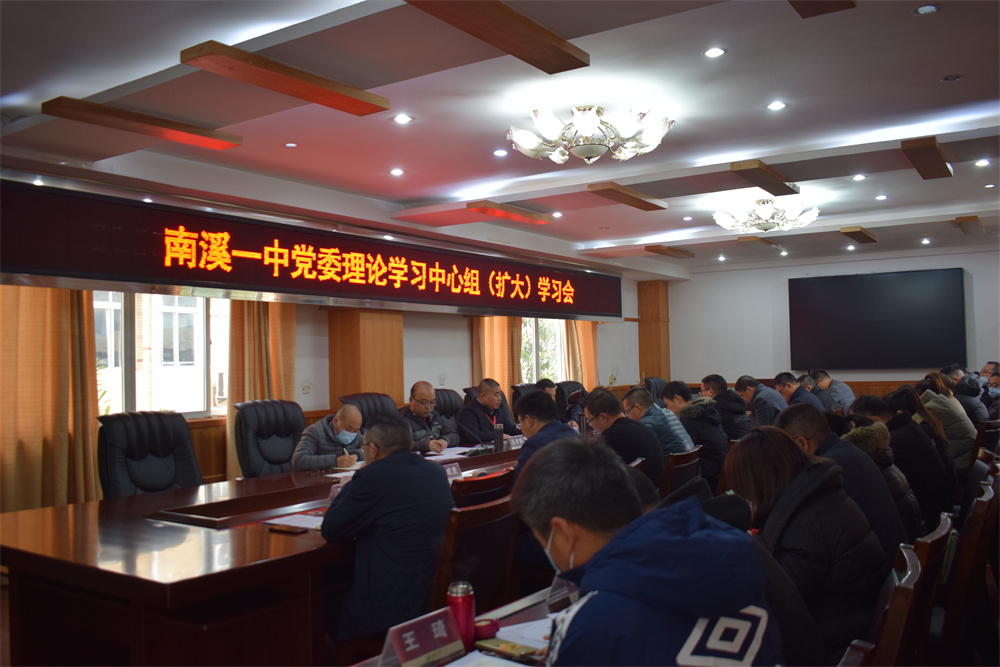 (馬孝容)12月9日,南溪一中在勤政樓三樓會議室召開了黨委理論學習中心組(擴大)學習會,全體黨委班子成員、中層干部、支部書記和學習秘書參會。