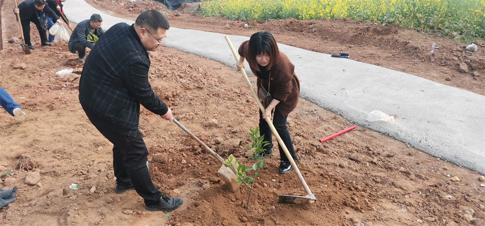 (李娟)陽(yáng)春三月,風(fēng)和日暖,萬(wàn)物生長(zhǎng),春天帶著絲絲暖意攜著蓬勃生機(jī)向我們走來(lái)。為了天更藍(lán)、水更綠、呼吸更美妙,3月10日,南溪一中行政支部全體黨員開(kāi)展了“植樹(shù)添綠 黨旗增輝”主題黨日活動(dòng),親手種下一棵棵小樹(shù)苗,讓綠色和希望充滿生活的每一個(gè)角落。