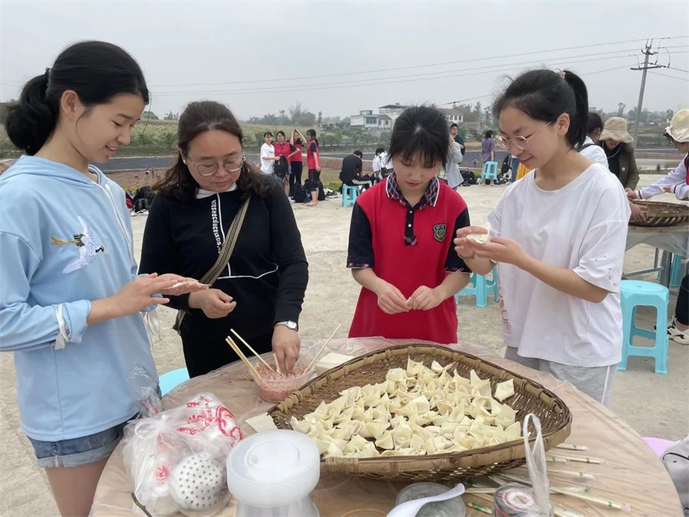 插秧活動結束后,同學們開始了包抄手活動。大家爭先恐后的拿皮、包餡兒、拿捏,看誰包得又快又好。包好的抄手倒入咕嚕咕嚕的開水里,煮上幾分鐘,一碗熱騰騰的抄手就可以出鍋了,同學們開心地品嘗起勞動過后的香甜。