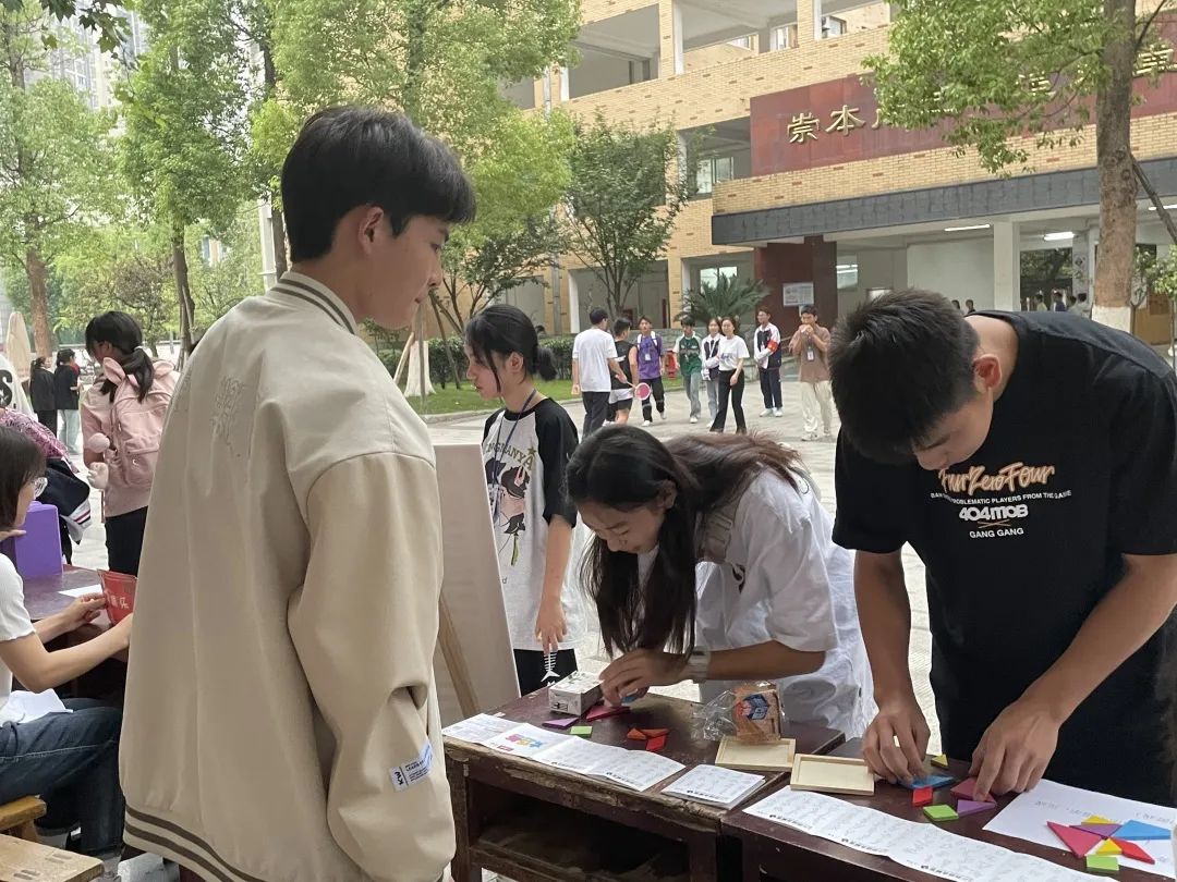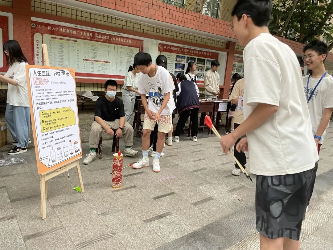 有人說,人生就像是酸甜苦辣咸五種味道的合成,在“瓶”中我們可以感知到不同情緒,而當(dāng)我們運用智慧去面對這些多樣的情緒時,我們會收獲不一樣的思考和成長!叭松逦 盡在瓶中”游園會將“酸甜苦辣咸”人生五味比作人生五感,并開發(fā)了對應(yīng)五味感受的活動,在體驗中去尋找應(yīng)對策略,感悟人生中多樣的應(yīng)對智慧。