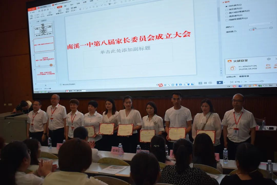 校級(jí)領(lǐng)導(dǎo)頒發(fā)南溪一中校級(jí)家長(zhǎng)委員會(huì)聘書(shū)。