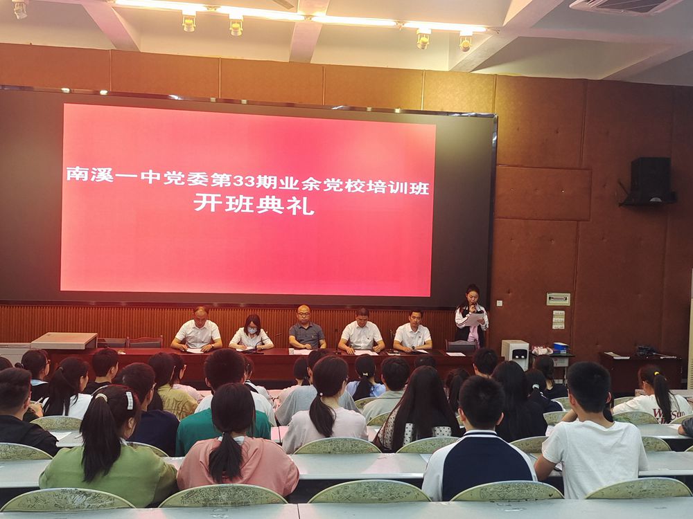 (李仕文)5月23日,南溪一中黨委第33期黨校開班典禮在中和堂舉行。典禮由南溪一中黨委一支部書記主持,學(xué)校黨委委員、副校長張孝輝及一支部支委委員、全體學(xué)員參加開班典禮。