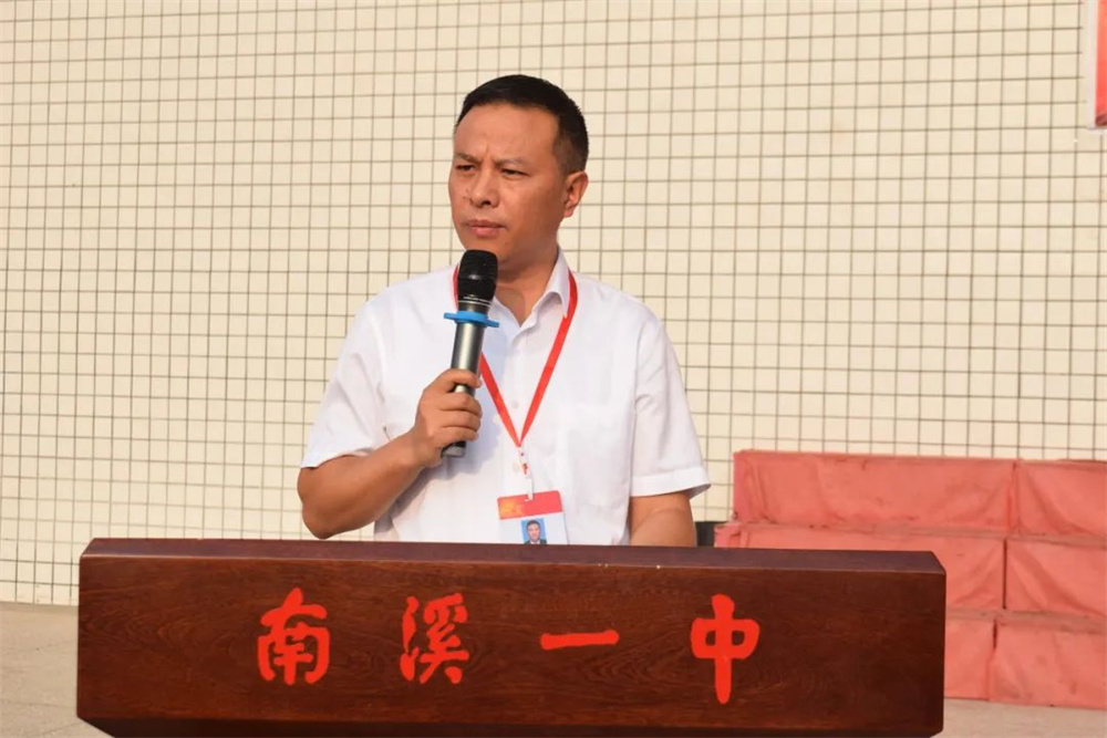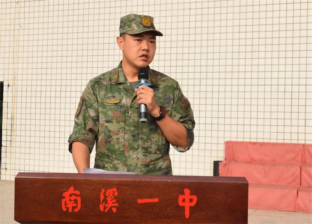 南溪一中黨委副書記、校長余禎銀代表學(xué)校對(duì)同學(xué)們的到來表示熱烈的歡迎和衷心的祝賀!向承訓(xùn)的各位教官致以崇高的敬意和誠摯的感謝!同時(shí)也對(duì)同學(xué)們提出三點(diǎn)希望:第一,希望同學(xué)們?cè)谲娪?xùn)中規(guī)范行為,樹立形象。第二,希望同學(xué)們?cè)谲娪?xùn)中安心訓(xùn)練,潛心求學(xué)。 第三,希望同學(xué)們?cè)谲娪?xùn)中追求探索,志存高遠(yuǎn)。他祝愿同學(xué)開心、幸福、堅(jiān)定地迎接軍訓(xùn)、成功地完成軍訓(xùn),在南溪一中遇見更好的自己!